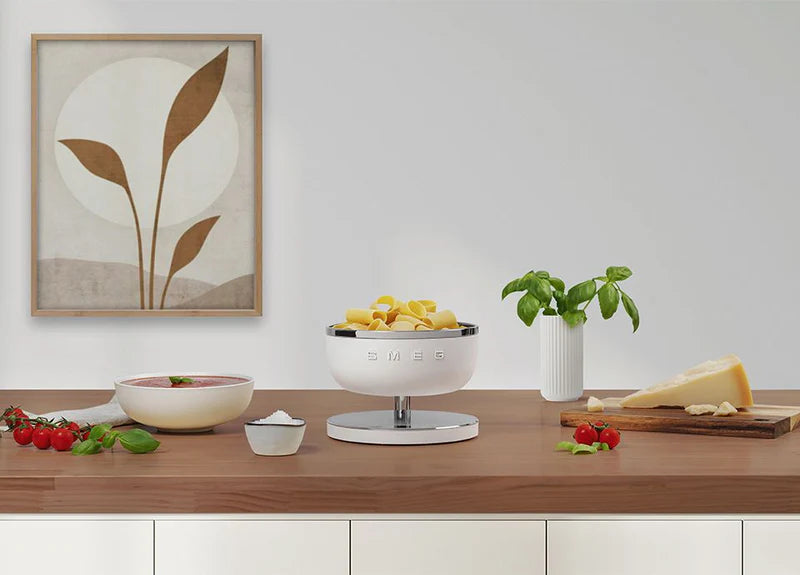 La balanza de cocina Smeg une diseño y precisión en un formato compacto. Con bol de acero inoxidable extraíble (5 kg de capacidad), pantalla LCD siempre visible, función de tara y conversión entre varias unidades. Se recarga por USB y funciona incluso mientras carga.